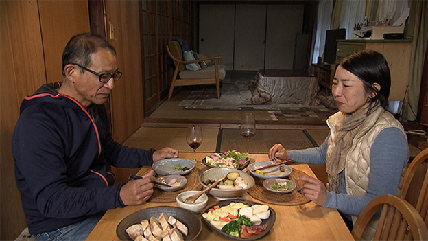 島暮らしをして大きく変わったのが夕ご飯。食卓に並ぶのは島の元気な野菜たち。そしてサラダにはたっぷりレモンを添えます。「サラリーマン時代はゆっくりご飯を食べる時間がなかった」と話す英紀さん。「日が沈んだら、もうご飯」と志乃さん。ゆっくり時間をかけて楽しむようになりました。いいひと時ですね。