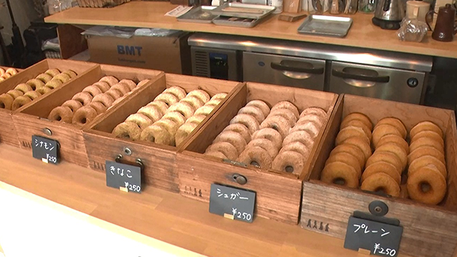 この日は、顔なじみの喫茶店が主催するマルシェに出店です。実は、お店のオープン前に初めてお客さんにドーナツを食べてもらったのがこのマルシェ。純子さんにとってとても大事な場所です。純子さんが愛情込めて一つ一つ丁寧に作ったドーナツは、どれも魅力的。待ちきれずにその場で食べるお客さんの姿も…。終始笑顔で接客する純子さんの姿は、とてもいきいきしています。この日も多くのお客さんが来店し、約400個のドーナツを販売しました。