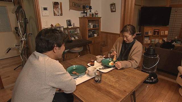 夕食作りは、料理が好きだという朋成さんが担当しています。この日は夫婦揃って食事をしながら、ドーナツ店を始めてからの1年を振り返りました。「楽しいことがいっぱいあった」と話す純子さん。朋成さんも「いろんな経験ができた」といいます。ドーナツ店の開業という大きな一歩を踏み出した純子さんを隣で力強く支えている朋成さん。お2人ともとっても素敵な笑顔です。