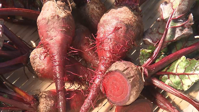 この日、純子さんと朋成さんは地元の食材を使った春の新メニューの試作に取り掛かりました。使用する食材は、マルシェで知り合った曽根さん夫妻からいただいたビーツ。すりおろしたビーツをオールドファッションの生地に加えて揚げます。すると、綺麗なピンク色のドーナツが完成しました。「美味しいけれど、もう少し色を入れたいね」と話す純子さん。商品化を目指して、これからも試作を続けていきます。