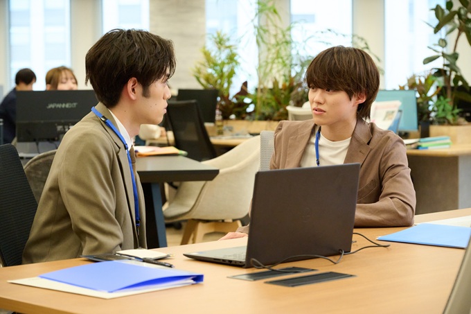 その後、出勤した優我は、さっそく花に向けて一発ギャグを! そばにいた専務の桜小路章(高橋光臣)は、二人の関係性にただならぬものを感じて――? 一方で、優我をサポートするべく必死で一発ギャグを考える岡山真之介(織山尚大)だったが、父親・浩次郎(塚地武雅)は、自分宛ての荷物の差出人を見た瞬間に表情を曇らせるのだった。