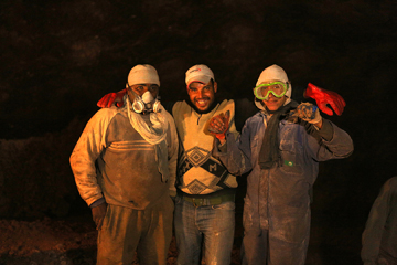 地面には白いものが…、これは雪ではなく塩。岩肌には洞窟が見えています。作業をしている人に訪ねると、この中で岩塩を採掘しているのだといいます。