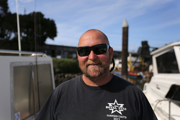 桟橋で出会った漁師さんは、サーフショップも経営するという海を愛する男です。仲間の船の出具合、海鳥の数、潮の流れを読みながら漁場を決めるそうです。仕掛けを作り、さあ漁の開始。海に生きる男の眼差しです。