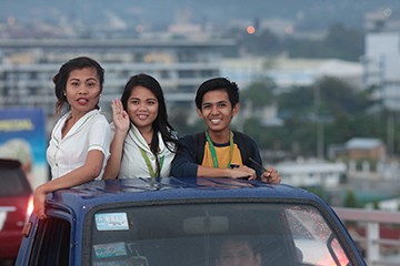 航海士が起こしてくれると、セブ島の灯りが出迎えてくれました。ロマンチックな気分に誘われます。船を降りる乗客たちの表情が弾みます。