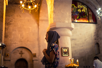 ウクライナから来たという女性。ウディーである彼女たちは、年に一度こうして民族の故郷を訪ねて来るといいます。この村にルーツを持つ人たちがはるばるとやって来ては、心の拠りどころを確かめ、祈ります。