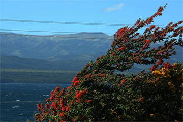 アンデス山脈から吹く風が湖水を波立たせ、木々を揺らします。風はパタゴニアの代名詞です。