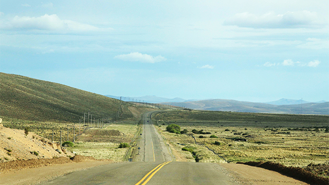 大地に続く一本の道。アルゼンチンの国道40号線を南へと走り続けます。