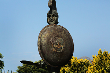 女性が「町の誇りよ」と、英雄の像を指差します。レオニダス1世。紀元前480年、僅か300人の戦士とともにペルシャの大軍と戦い、壮烈な死を遂げたスパルタの王です。「屈強な戦士にあやかって体を鍛えている」と、出会ったジョギングの人が言いました。