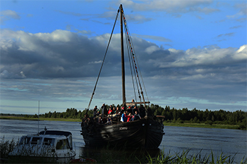 出航の鐘が鳴り、人々を乗せて船が動き出しました。川の中央、国境線ギリギリのところを進みます。かつて船は毛皮や蜂蜜などをバルト海や北海の港に運び、帰りは塩やワインを積んできたといいます。