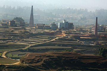 山の国ネパール。カトマンドゥ盆地に続く道沿いで、幾つもの煙突を目にしました。これはレンガを焼く窯の煙突です。日々大量のレンガが焼かれていきます。「大地震で壊れた建物の修復に使うレンガは、いくらあっても足りないのだ」と親方が語ります。陶土を掘りだす作業員たちの眼差しに復興への強い意志が漲っています。