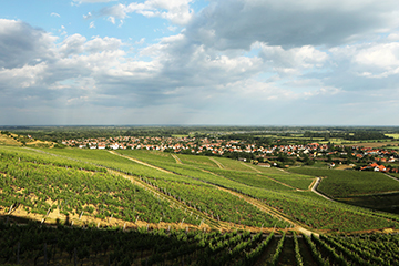 山の斜面に広がる広大なブドウ畑。ここトカイは、貴腐ワイン発祥の地として知られる土地。貴腐ワインはカビによって変質したブドウで造ったワインです。