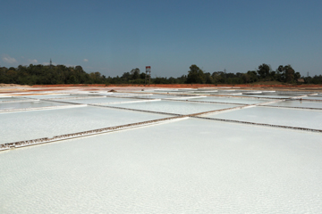 遥かな時代へ想いを抱きながら進むと、塩田が広がりました。作業主任の話では、ここの地下水は地殻変動で取り残され、凝固した海水の塩分を含んでいるため、塩が採れるといいます。
