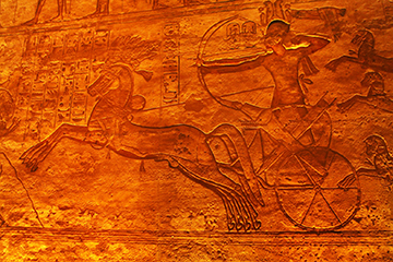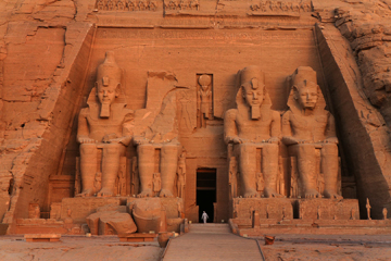 昇る朝陽が入り口に鎮座する高さおよそ20メートルの4体のラムセス2世の像に表情を与えます。その名は太陽神ラーに由来するといわれています。
