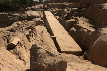 花崗岩の石切場に足を運ぶと、紀元前15世紀に作業が開始されたという切りかけのオベリスクが横たわっていました。オベリスクとは太陽神とファラオを象徴するモニュメントです。