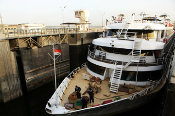 この水門が出来て大分航行が楽になったと、民俗服のベテラン船長が目を細めます。