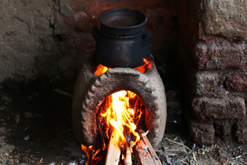 古いかまどで鍋が煮立ちます。調理しているのは、伝統のヒヨコ豆のペーストです。