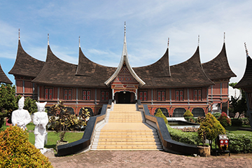 水牛の角を象った屋根は、この地の商業の民ミナンカバウ人の伝統様式で建てられた博物館で、展示された華やかな結婚式の衣装は、女性たちの憧れです。インド洋を渡る貿易風は、この地に多様な文化を根付かせて来たのです。