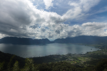 スマトラ島は自然の恵み溢れる島です。眼下に見晴らすマニンジャウ湖は、およそ5万2千年前、噴火によって出来たカルデラ湖です。