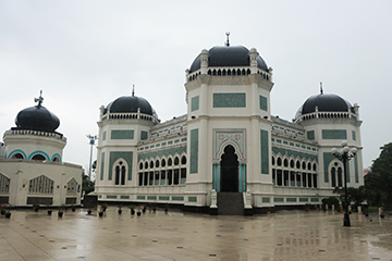 大通りに並ぶ夥しい広告と行き交うバイク。出発地パダンからおよそ1020キロを走り、メダンに到着しました。オランダ統治時代に発展した、スマトラ島第一の商業都市です。