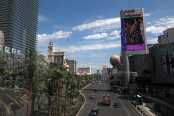 出発地サンフランシスコからおよそ1200キロを走ると、巨大な建造物が並ぶ大都市に入りました。ラスベガスは砂漠の補給地として町が拓かれ、ニューディール政策で完成したフーバー・ダムの電力で発展し始めた町です。