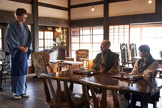 仕事の電話をしながら、カツカツとヒールの音を響かせて歩く女性・つばさ(ファーストサマーウイカ)。ふと足を止めると、目の前に趣のある古民家風の和風喫茶『鹿楓堂』が現れる。吸い寄せられるようにつばさが店に足を踏み入れると、着流し姿のスイ(小瀧望)が優しくほほ笑んでいた。