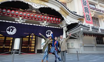 東銀座では歌舞伎座へ。木挽町広場や屋上庭園、歌舞伎の世界を体験できるギャラリーに一同興奮!
