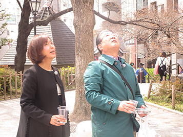 花見客でにぎわう隅田公園よりスタートした一行…。