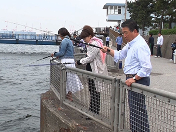 海づり桟橋では、海釣り初体験の川中さんと釣りに挑戦。大物をゲットすることができるのか?