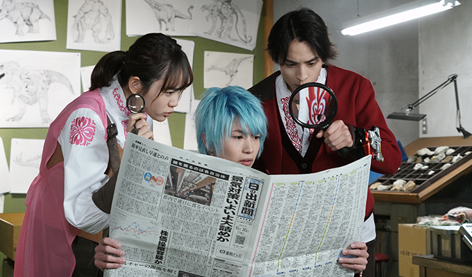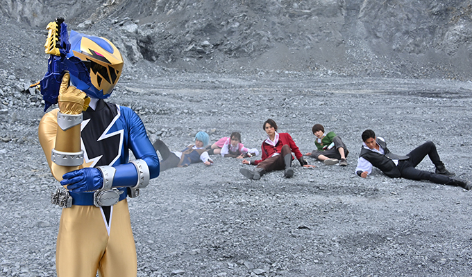 ういから話を聞いたコウ(一ノ瀬颯)たちは、カナロの元へ。仲間になってほしいと声をかけるが、カナロは即座に断る。婚活のため忙しいというのだ。そんな中、ケルピーマイナソーが出現。リュウソウジャーが応戦するが、水を操るケルピーマイナソーにはメラメラソウルですら通用せず、5人は吹っ飛ばされてしまう。