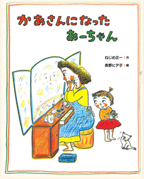 かあさんの鏡の前で、かあさんみたいにお化粧したら、かあさん気分になったあーちゃん。掃除、洗濯、夕食の支度…。そして、とうとう自転車をキコキコして、本当のあーちゃんを探しにでかけます。お化粧したあーちゃんに、道行く人が驚いてふり返っているところはとてもユーモラス。探しているうちに迷子になってしまって…。