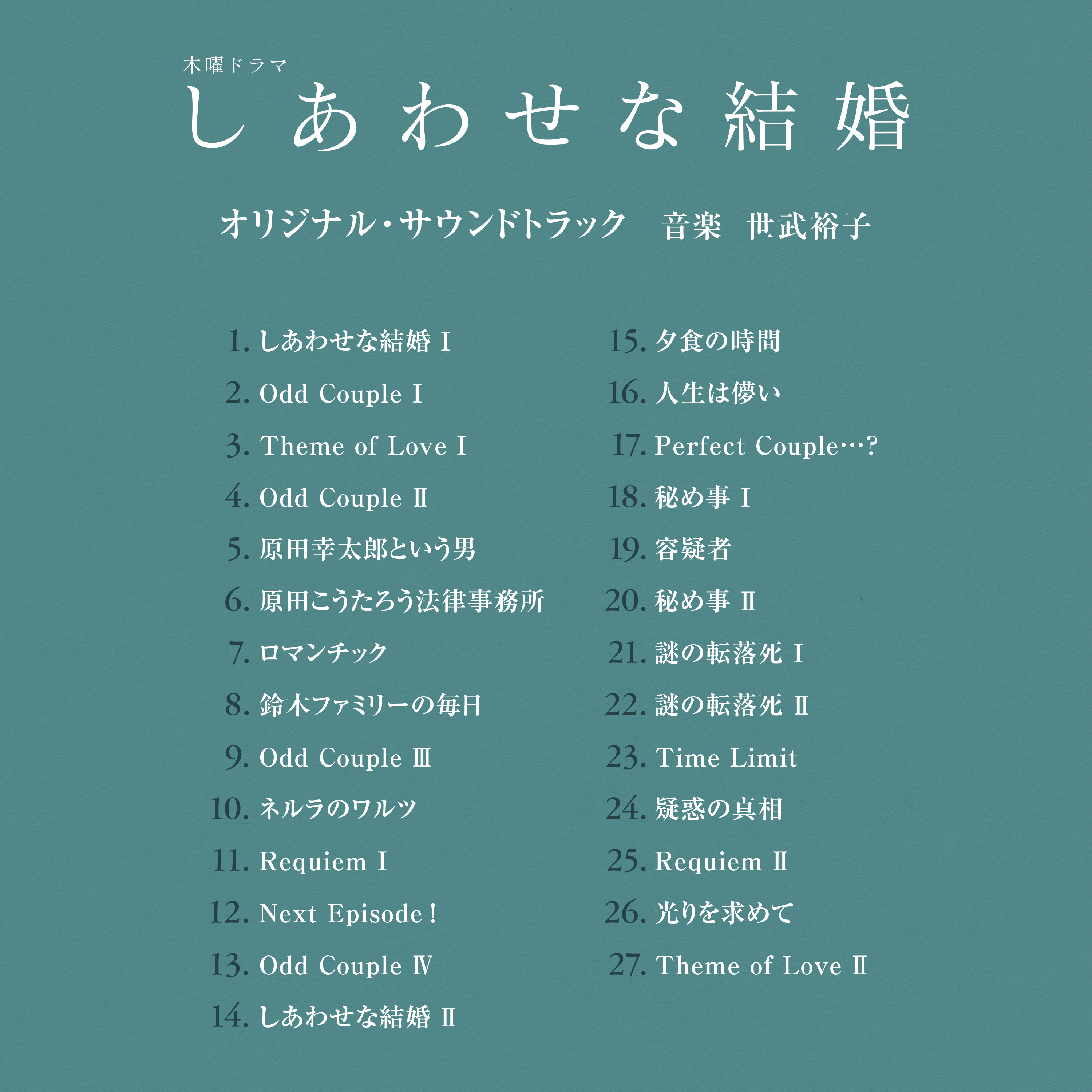 タイトル:テレビ朝日系木曜ドラマ「しあわせな結婚」オリジナル・サウンドトラック