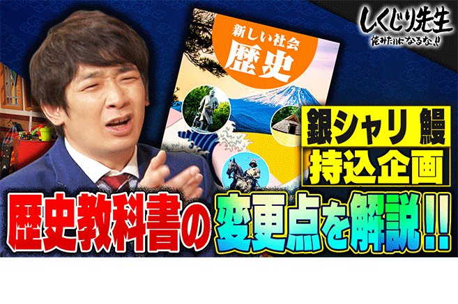 今回は銀シャリ鰻先生による特別授業でした。知らなかったら恥をかく歴史教科書の変更点をご紹介しました。「鎌倉幕府が成立したのは1192年ではない?!」「日本最古の貨幣は和同開珎ではなかった?!」など研究が進むにつれて歴史の新事実や新情報が発見され教科書が変わってきていることを紹介。過去に学んだ歴史が変わっていることを知らずに恥をかかないための授業をしてくれました。