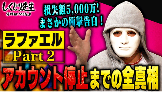 正体不明の仮面YouTuberラファエル先生の後半戦!YouTubeを始めて1年でトップYouTuberの仲間入りを果たしたラファエル先生。しかし、過激な動画をあげまくっていたせいでアカウントが緊急停止。一瞬にして登録者がゼロになり数千万円の損失で無収入生活に陥ってしまったという。さらに登録者数をゼロから増やしていると予期せぬ出来事が?!アカウント停止のしくじりから学んだ教訓はを伝授してくれました。