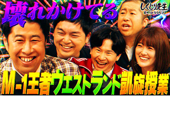 これまで何度もしくじり学園に出演してきたお笑いコンビ・ウエストランドによるしくじり学園凱旋授業でした。2022年M-1グランプリで優勝したウエストランドだが、優勝以降、収録のほぼ全ての現場で悪口を求められる日々に困っているという井口。そんな現状を打破すべく研究部メンバーが悩みを親身になって聞くが、井口が授業の進行そっちのけで研究部メンバーのリアクションに食って掛かり、授業は崩壊していく結果となり、「井口のキレスイッチがおかしくなっている」という別の問題が浮き彫りに。ウエストランドが凱旋報告に来た結果、本当は悩みなんてないけど色々と挑戦してみるということになりました。