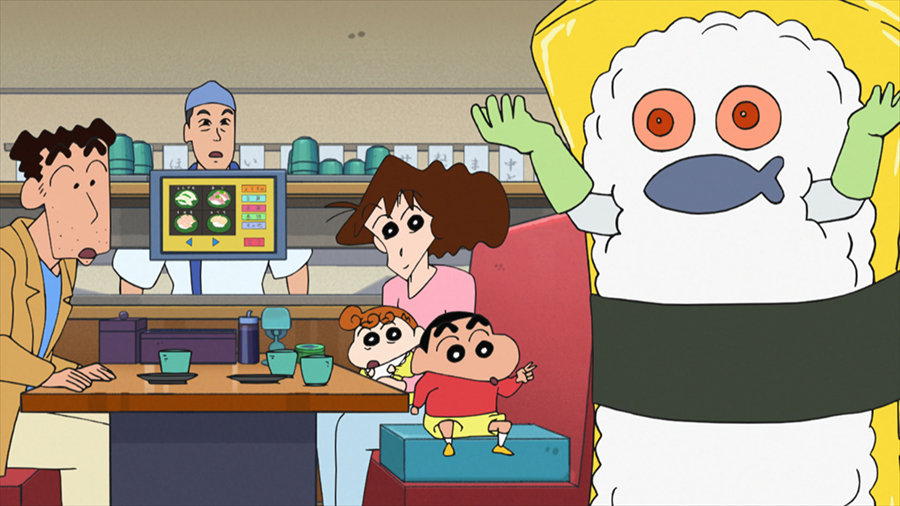 ひろしが注文を迷っている間に、しんのすけはマイペースに高い大トロや、変わり種の寿司ばかり注文していく。