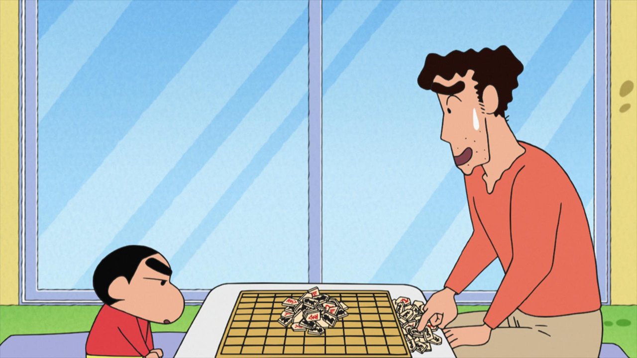 しんのすけに将棋を教えるひろし。だがやはり幼稚園児には将棋は難しく、対局はできない。