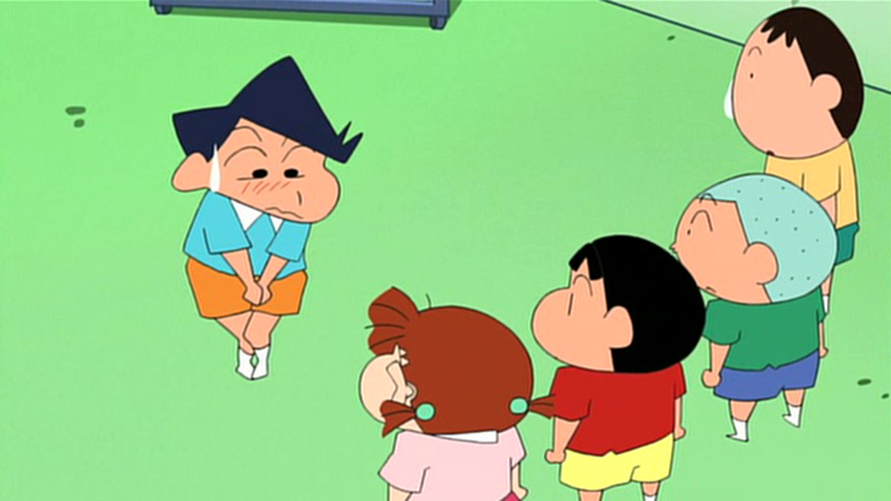 お遊戯の練習で野原家にやってくる風間くん達。が、風間くんの靴下に穴があいていた。