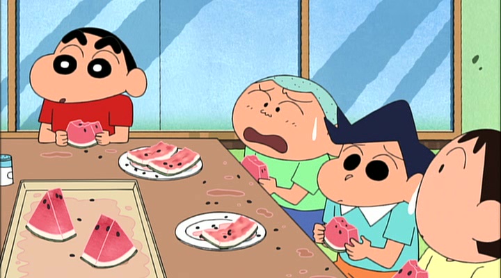 秋田からスイカが送られて来た。野原家に風間くん達を呼び、花火をしたり、スイカを食べたり、怪談話をしたりとサマーパーティーを楽しむのだが……!!