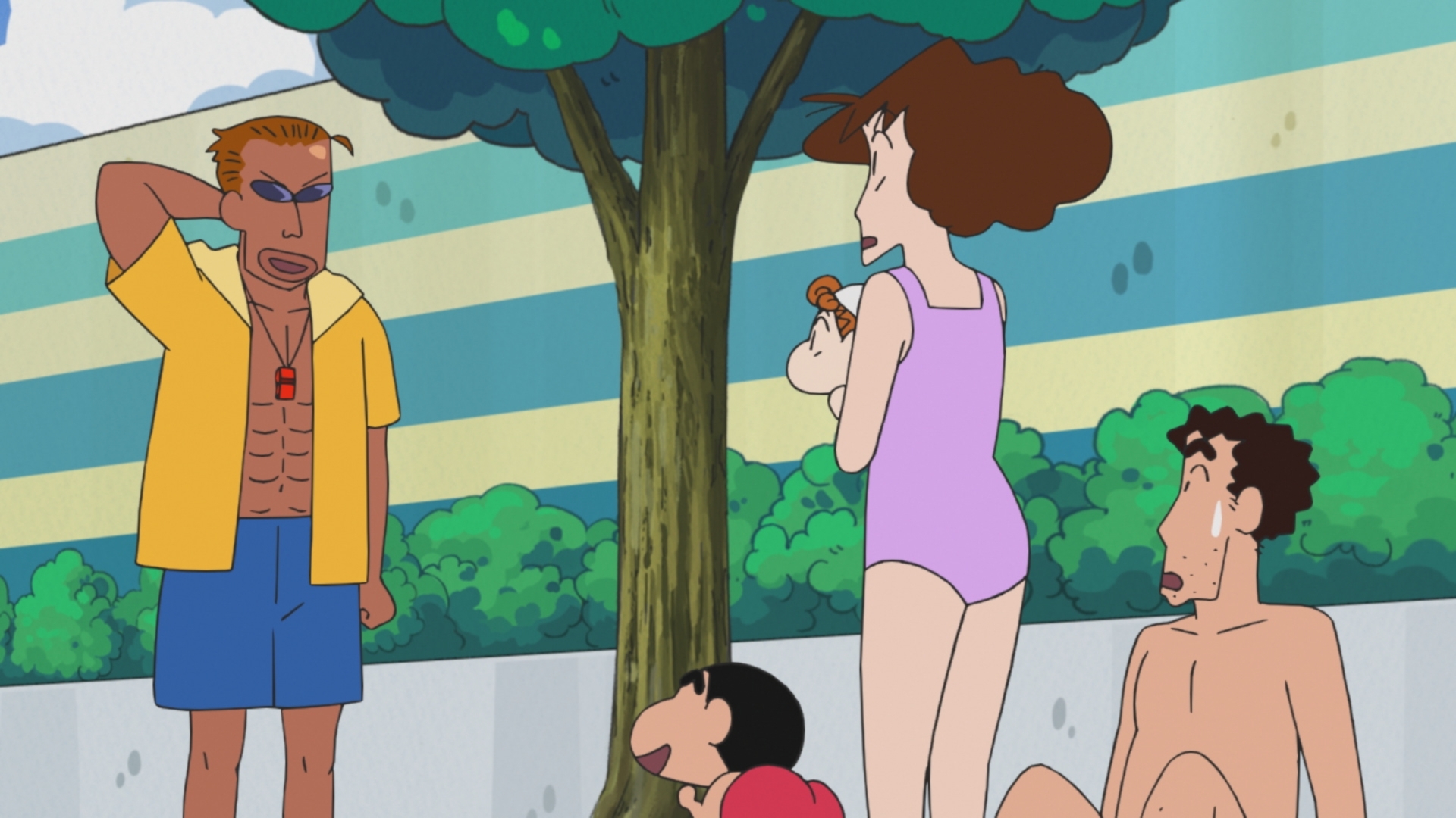春我部市民プールに遊びに来た野原一家。そこへムキムキのイケてる監視員が親しげに話しかけてくる!ひろしもみさえもその男の見覚えがないというが、一体この人はだれ……!?