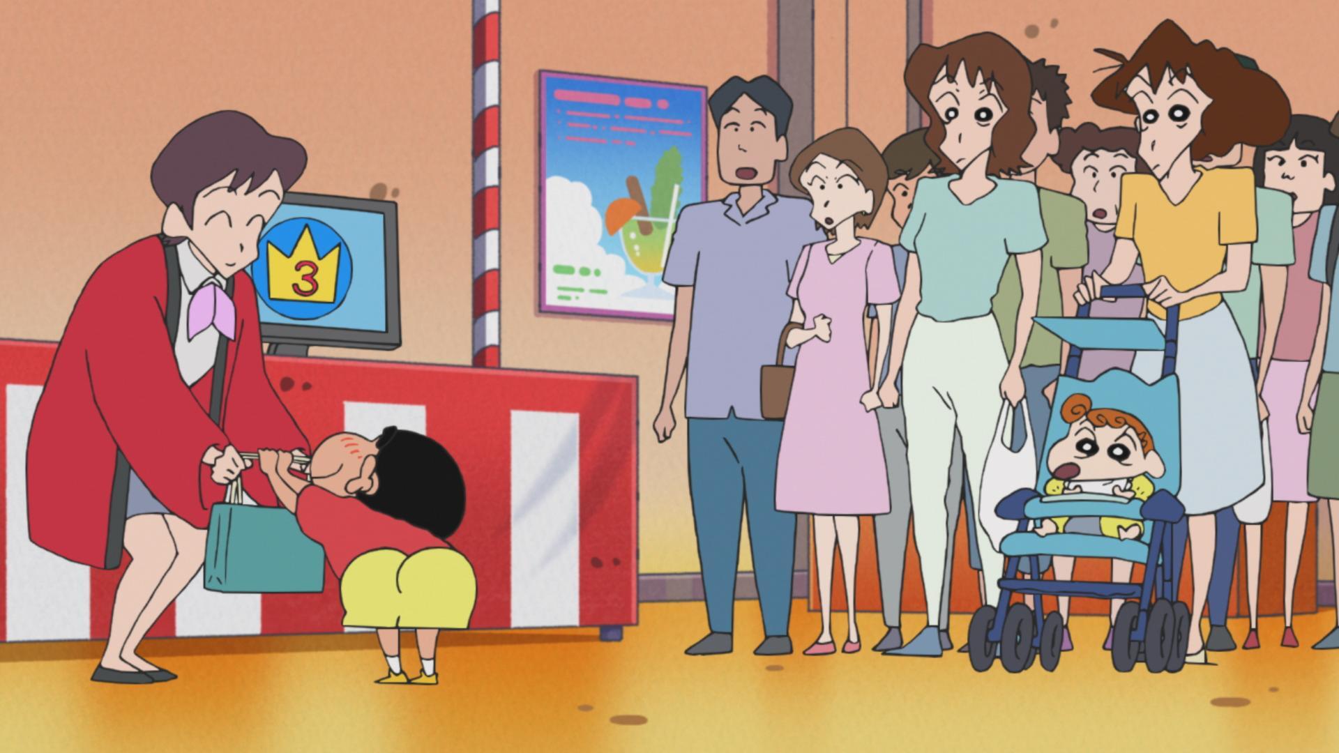 サトーココノカドーの抽選会場で、クジ運が悪いと思い込むむさえのかわりに抽選に参加したしんのすけは、見事和菓子セットをゲット!なぜかみさえは、昔からツイていてずるいとむさえから非難されてしまう。そこへやってきたのは……!?