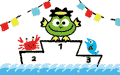 「左手」「右手」を交互に押しながらタイミングよく「息つぎ」をして100mを猛スピードで泳ぎきれ!! |
