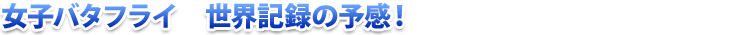 アテネ五輪銅メダリスト・中西悠子が絶好調。2008年1月JSCA新年フェスティバルにおいて200mバタフライ2分03秒79の日本新記録を樹立。この記録は世界記録にあと0.26秒と迫る好タイム、競泳ジャパンオープンでは夢の世界記録を狙う!昨年の世界競泳代表16歳・秋山夏希や先月北京オープン(長水路)で日本歴代2位となるタイムを出した17歳・星奈津美にも注目だ。