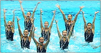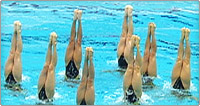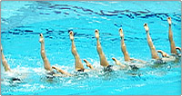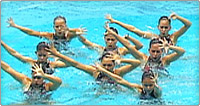 演技中のどこかに、チーム全員で円及び直線を作る隊形 >>動画を見る