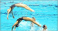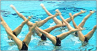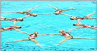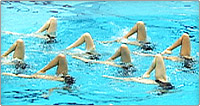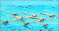 下向きの姿勢から垂直姿勢になり片足を曲げる 曲げた足を垂直に伸ばし反対の足を水面に下ろす 足が直角になる動きまでが規定要素となる >>動画を見る