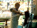 アンコウの食べ方が初めて記載されたのは、江戸初期の料理本「料理物語」で、料理の種類と、その料理法が書かれています。アンコウは、ブヨブヨ、ヌルヌルしているため、「鮟鱇は まな板へ乗る 魚ではなし」と昔から川柳に詠まれているように、「吊るし切り」という方法で捌かれます。この吊るし切りは、江戸中期の百科辞典「和漢三才図会」にその方法が詳しく書かれてあり、現在に至るまでその方法は殆ど変わっていません。