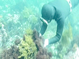 テングサは浜辺から水深10メートルくらいまでの一帯で採れる海藻です。夏、静岡県 伊豆市 土肥ではテングサ漁が盛んに行われています。海女さん達が何度も素潜りし、海底からテングサを採ってきては、ウキにつけた「すかり」という網に入れていくのです。50歳代ならまだまだ若手、海女さん達はとても元気です。