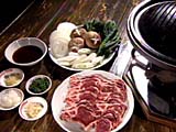 4.あとは鍋で肉・野菜を豪快に焼くだけ。ジンギスカン用の鍋がなければ焼肉用の鉄板を使っても良い。