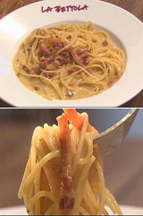 イタリアにはパンチェッタというベーコンがあります。豚バラ肉を塩漬けにしたもので、イタリアではよくパスタ料理に使われています。東京・銀座にあるイタリアンレストラン「ビス ラ・ベットラ」。このレストランのオーナーシェフである落合務さんがあのパスタを作ってくれました。ローマっ子の魂といえるこのイタリアンベーコン。パスタとの愛称は抜群です!
