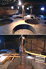 江戸時代に醤油の町として栄えたこの町には、今も昔ながらの製法で醤油を作る醤油蔵が残っています。毎年冬に“寒仕込み”と呼ばれる仕込み作業が行われます。大豆と小麦に麹を加え、塩水と混ぜ合わせて熟成させます。蔵に代々に住みついてきた酵母菌が醤油の味や香りを引き立てます。さらに熱を加えることで殺菌され、保存できる調味料となります。一年半もの歳月をかけて醤油の完成です。