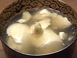 1. 出汁、薄口醤油、塩を火にかけ、一度沸騰したら豆腐を食べやすい大きさにし、加える。